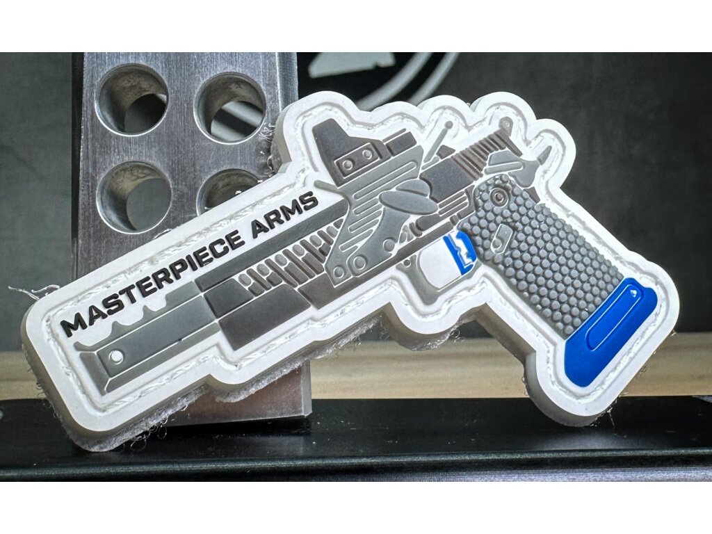 PVC nášivka s MPA nerezovou úpravou a modrou otevřenou pistolí