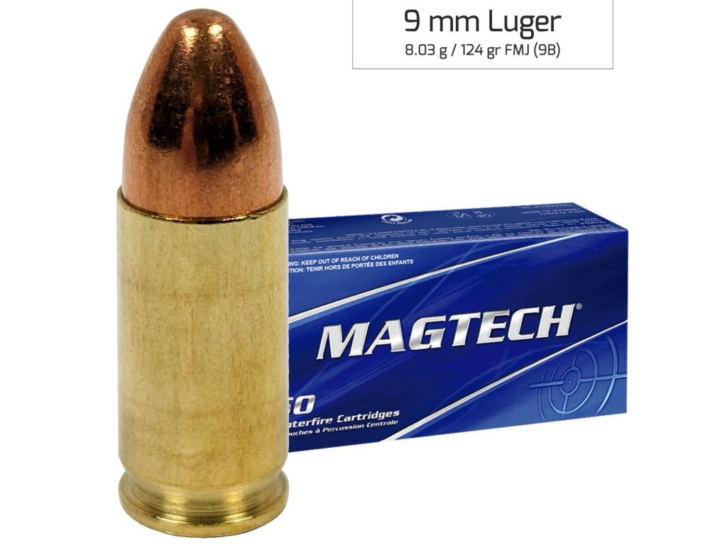 Pistolové náboje Magtech 9 mm Luger / 9x19 s celopláštovou strelou FMJ (Full Metal Jacket) o hmotnosti 8,0 g / 124 gr jsou ideální volbou pro rekreacní a cvicnou strelbu na terc.