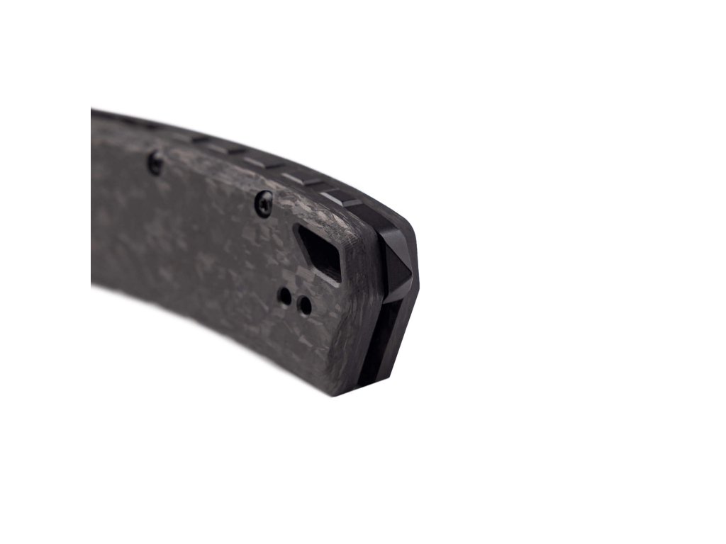 Čepel je vyrobena z velmi odolné oceli D2 s titanovým povlakem. Střenky rukojeti z uhlíkového vlákna nabízí spojení dvou skvělých vlastností - lehké jako pírko, ale pevné jako skála.