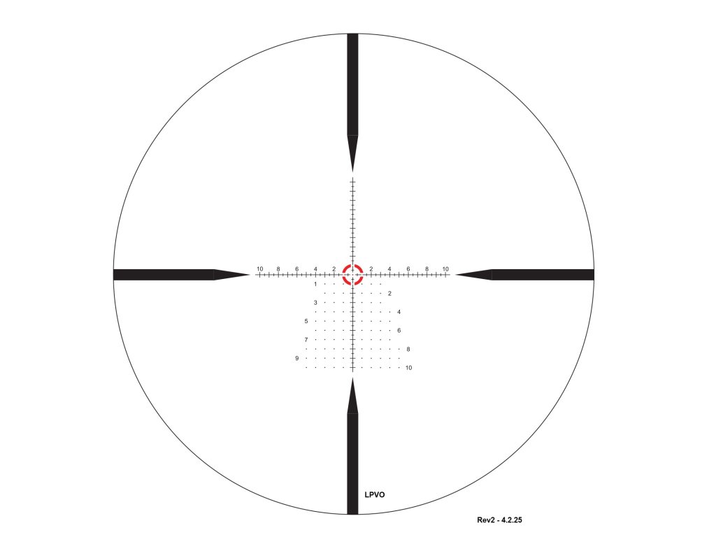 Osnova RAR umožňuje extrémně rychlé zaměření a dynamickou střelbu, a přitom zvládá i přesné zásahy. Silné vnější pruhy se zužují do ostrých bodů a přirozeně vedou oko do středu osnovy. Segmentovaný ¾ osvětlený kruh a středový bod usnadňují rychlou střelbu. Integrované 2 MOA značky a číslované 4 MOA intervaly elevace pomáhají kompenzovat vítr i pokles střely.