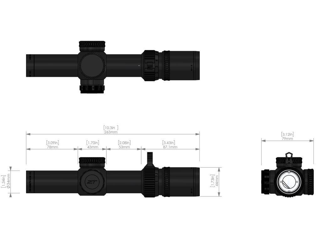 Čistý a funkční design – kryté věžičky elevace a stranové korekce + integrovaná, odnímatelná throw lever pro rychlé změny zvětšení